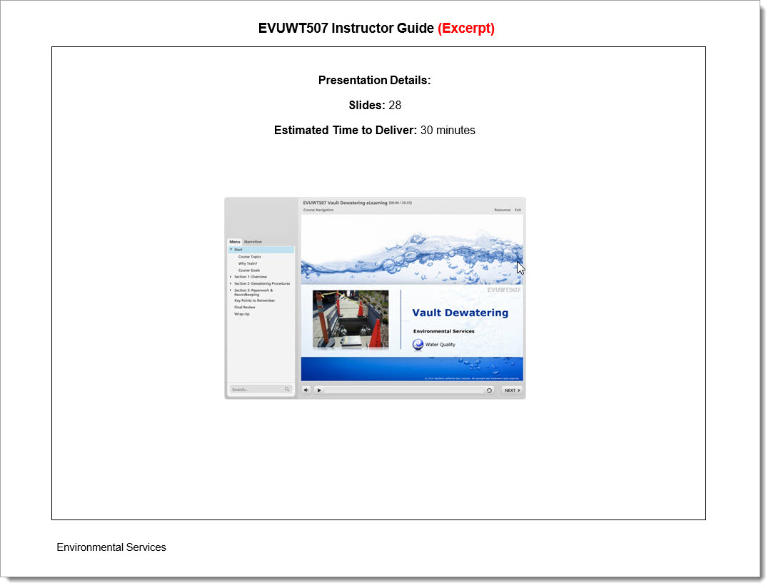 Description: I designed this document to guide instructors in using the specially-designed "dual-purpose" eLearning courses I created for this utility company.