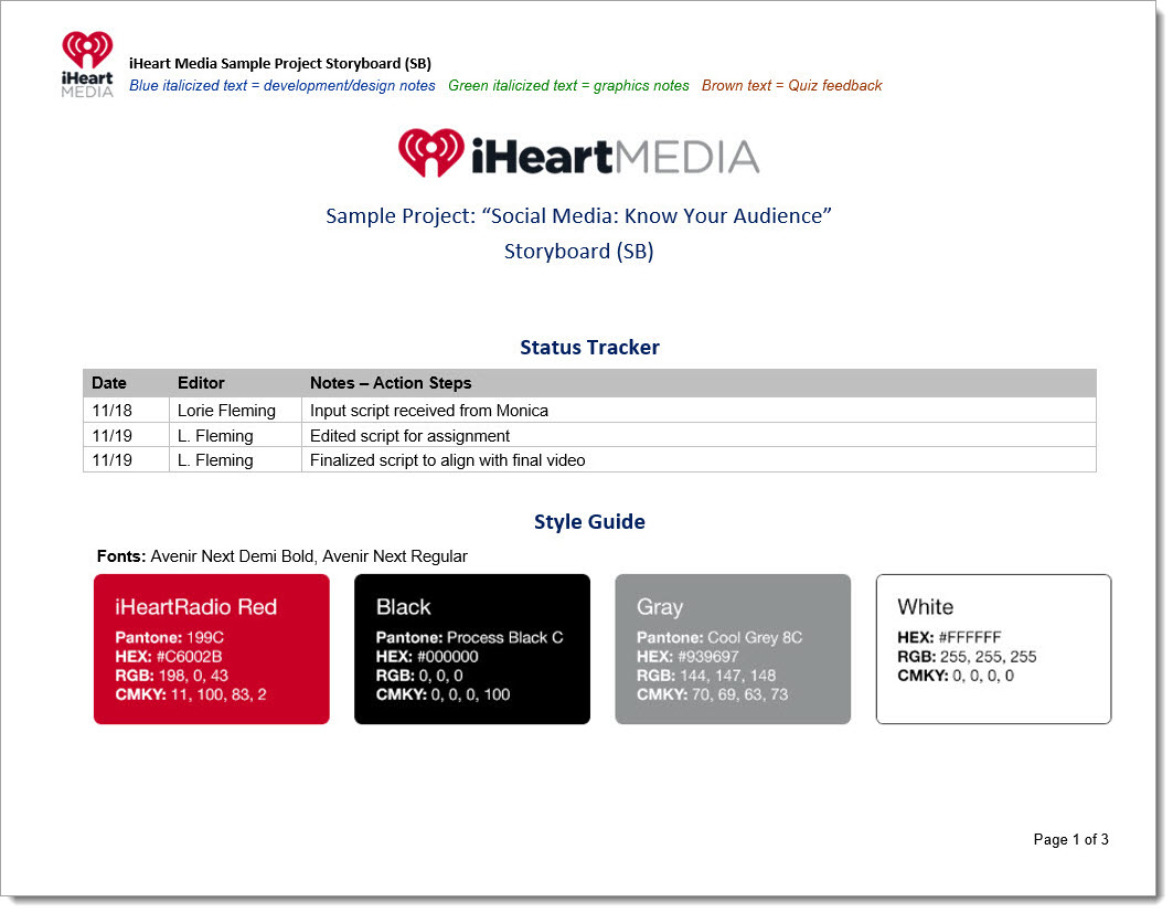 Description: I created this original storyboard template to facilitate the design a sample explainer video project at the request of a global media & entertainment company. You can view the video sample in the eLearning + videos page of my portfolio.